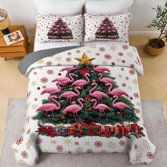 Shineful All Season Quilt 3-Piece Set - Flamingo Festive Tree
