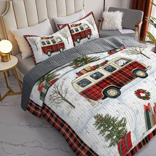 Shineful All Season Quilt 3-Piece Set - Plaid Christmas Camper