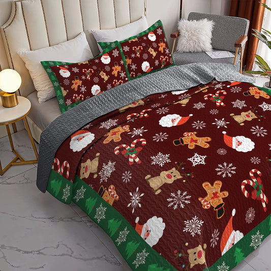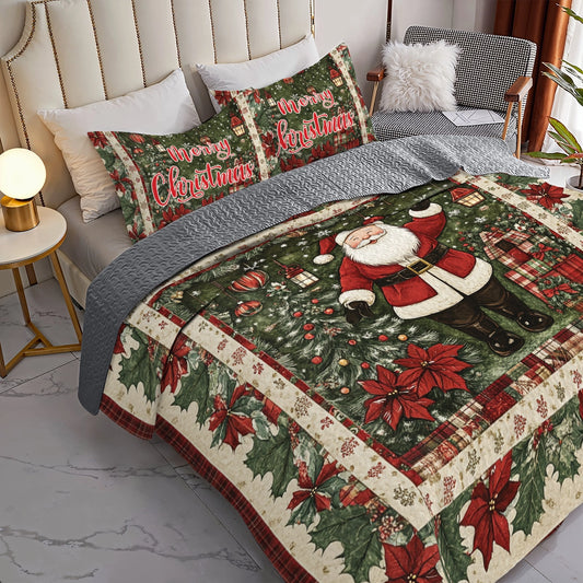 Shineful All Season Quilt 3-Piece Set Christmas Santa's Festive Cheer