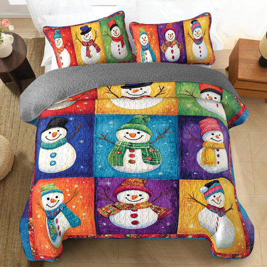 Shineful All Season Quilt 3-Piece Set - Christmas Jolly Snowmen