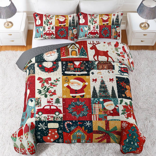 Shineful Flat Print All Season Quilt 3-Piece Set Welcome Santa Claus