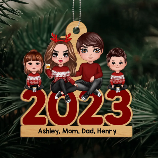 Shineful Decoration Ornament Family Sitting 2023 Christmas- Shineful Perzonalized Wooden Ornament