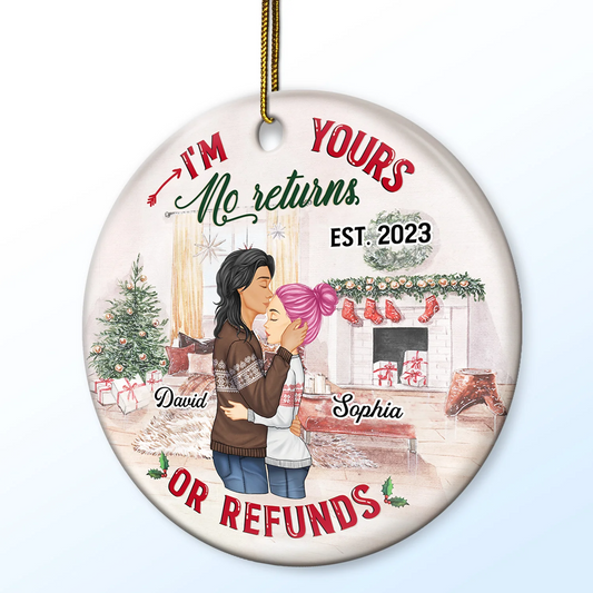 Shineful Decoration Ornament No Returns Or Refunds - Christmas Gift For Couples - Personalized Custom Circle Ceramic Ornament