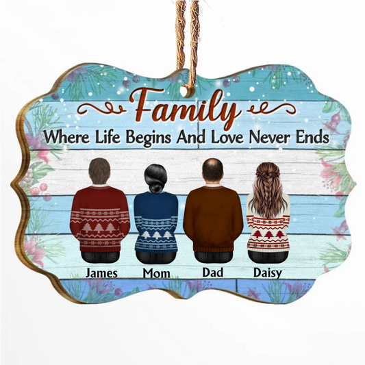 Shineful Decoration Ornament Family Where Begins And Love Never Ends - Christmas Gift - Personalized Wooden Ornament