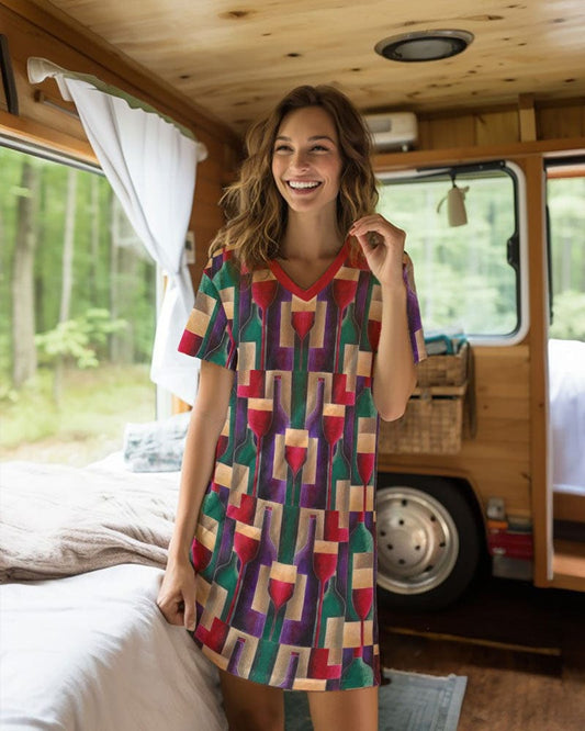 Dachshund Shineful V-neck Women's Nightshirts Mischievous Dachshund