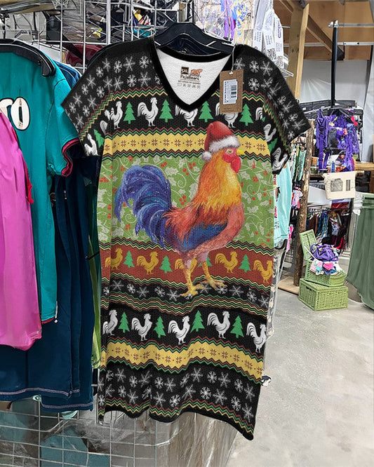 Chicken Shineful V-neck Nightshirts Chicken Farm Colorful