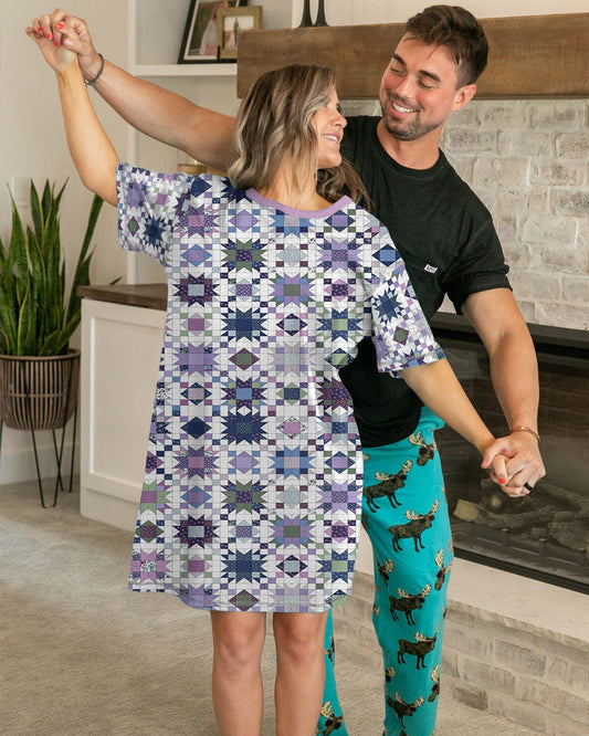 Quiltings V-neck Quilting Blocks Purple