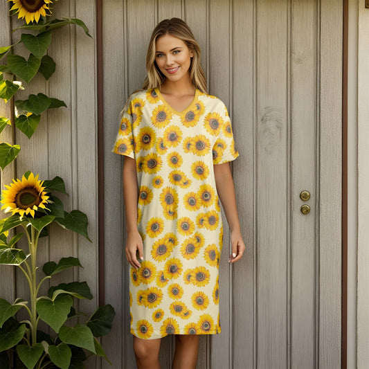 Sunflowers V-neck Nightshirt Sunflower Dance