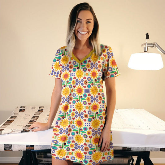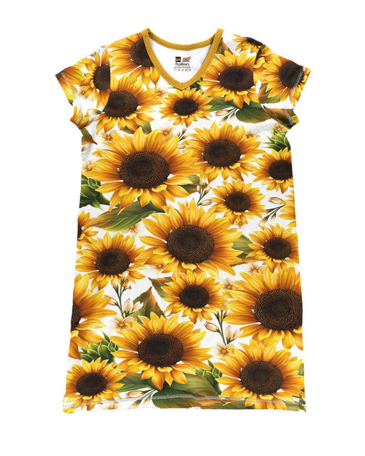 Sunflowers V-neck Nightshirts Press Sunflower