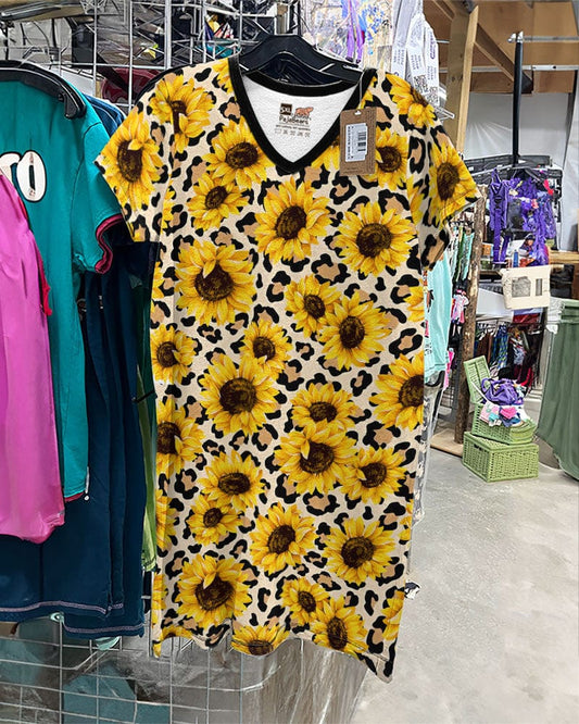 Sunflowers V-neck Nightshirts Leopard Sunflowers