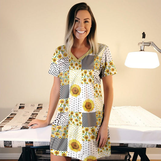 Sunflowers V-neck Nightshirts Blocks of Sunflower