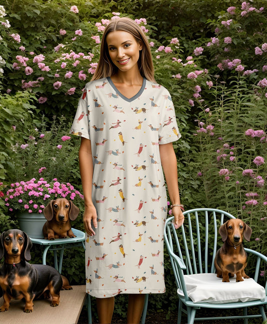 Dachshunds V-neck Nightshirts Lovely dachshunds