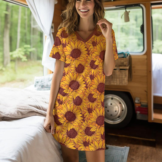 Sunflowers V-neck Nightshirts Fragile Like A Bomb