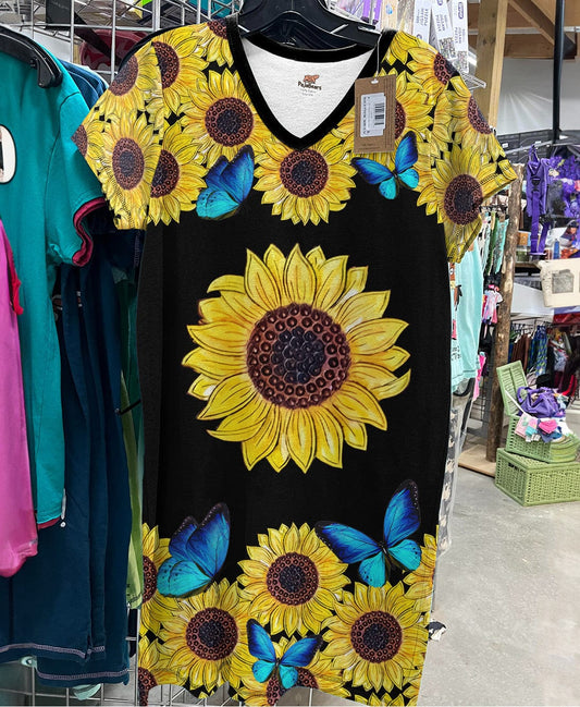 Sunflowers V-neck Nightshirts Blue Butterflies