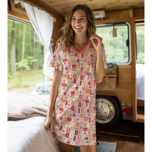 Camping Shineful V-neck Nightshirts Colorful Trailers