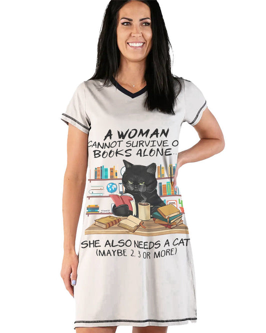 Cat bookshelf V-neck Shineful V-neck Nightshirt