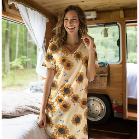 Sunflower Shineful V-neck Nightshirts Sunflower Lover