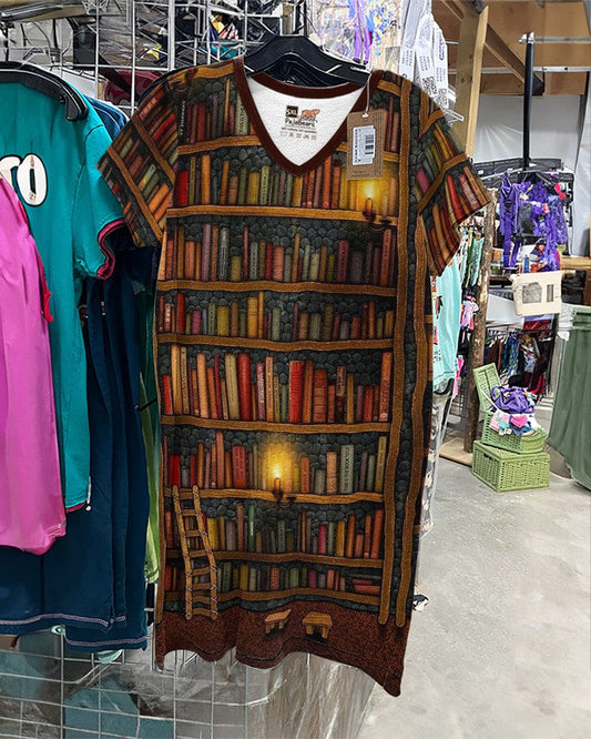 Reading Shineful V-neck Women's Nightshirts Book Library TH7