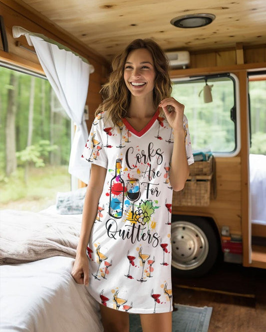 Wine Shineful V-neck Nightshirts Corks Are For Quitters