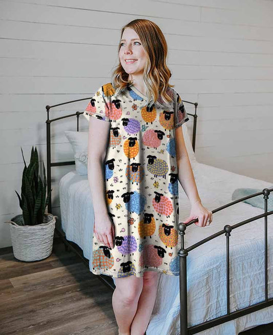 Sheep Shineful V-neck Women's Nightshirts Colorful Sheep
