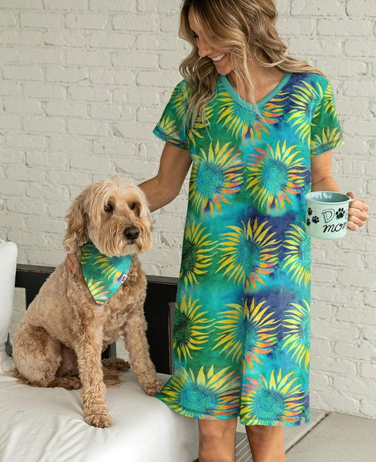 Tie dye V-neck Shineful V-neck Nightshirt Ocean