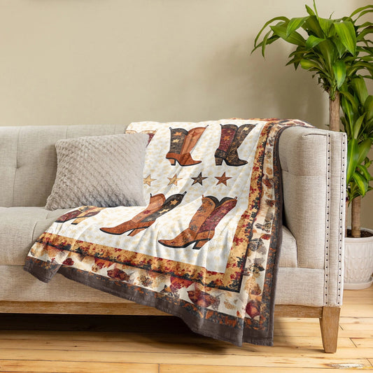 Shineful Fleece Blanket Cowboy Rodeo Boots