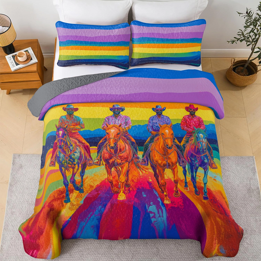 Shineful All Season Quilt 3-Piece Set Neon Rodeo Cowboy