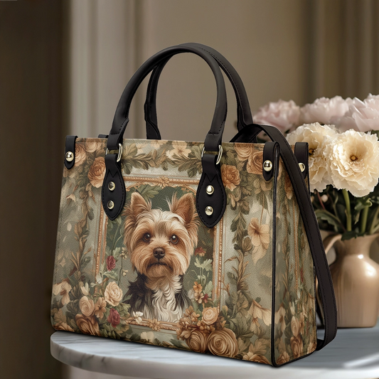 Shineful Leather Clutch Purse With Wristlet Strap Handle Luxe Yorkie Companion