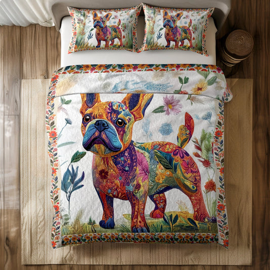 Shineful All Season Quilt 3-Piece Set - French Bulldog Floral Fantasy