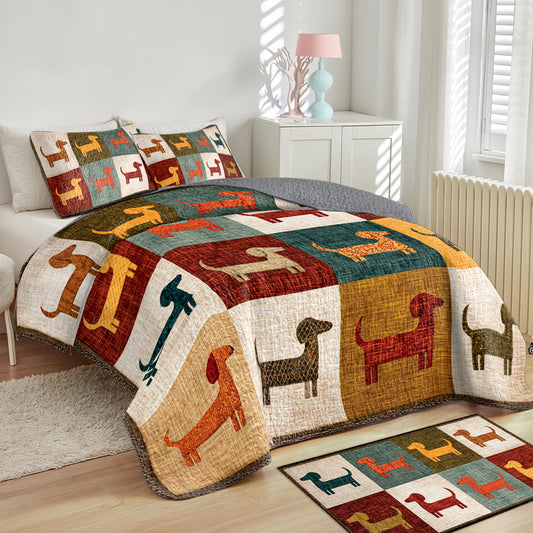 Shineful All Season Quilt 3-Piece Set Colorful Dachshund Patch