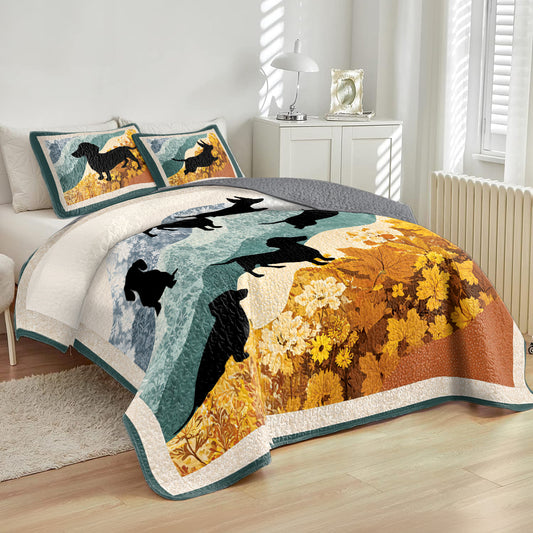 Shineful All Season Quilt 3-Piece Set Quilt Set Dachshund Autumn Walk