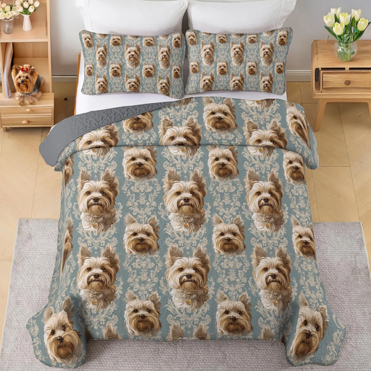 Shineful All Season Quilt 3-Piece Set Elegant Yorkie Bliss