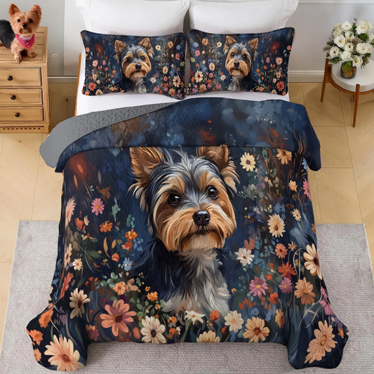 Shineful All Season Quilt 3-Piece Set Enchanted Yorkie Bloom