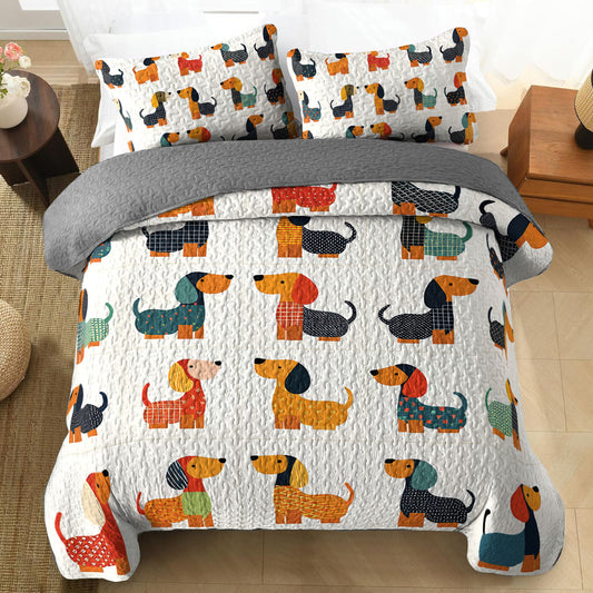 Shineful All Season Quilt 3-Piece Set - Mischievous Dachshunds
