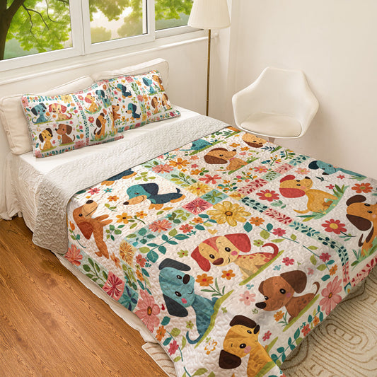 Shineful All Season Quilt 3-Piece Set Floral Cheerful Dachshund