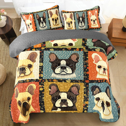 Shineful All Season Quilt 3-Piece Set Bold Frenchie Faces