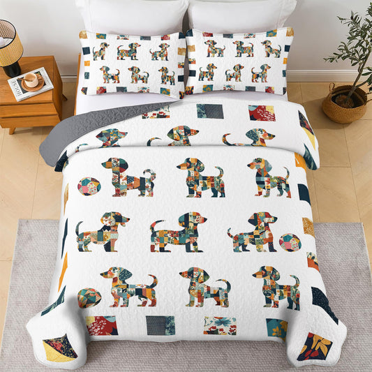 Shineful All Season Quilt 3-Piece Set - Dachshund Patchwork Paradise