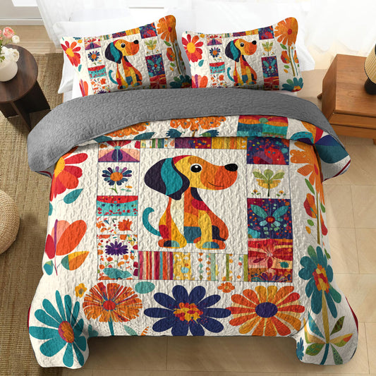 Shineful All Season Quilt 3-Piece Set - Dachshund With Colorful Pattern