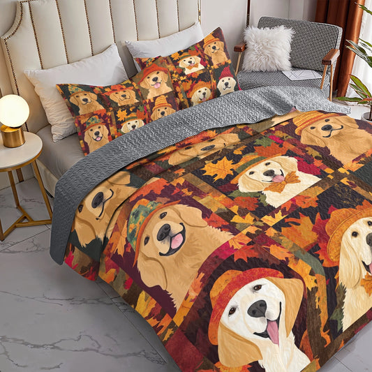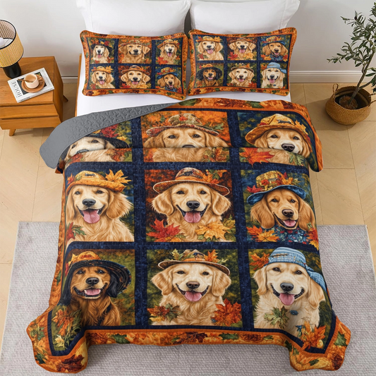Shineful All Season Quilt 3-Piece Set Autumn Golden Paw