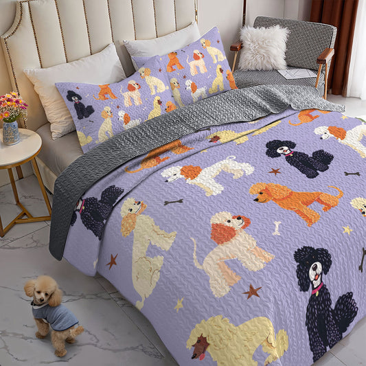 Shineful All Season Quilt 3-Piece Set Purple Poodle