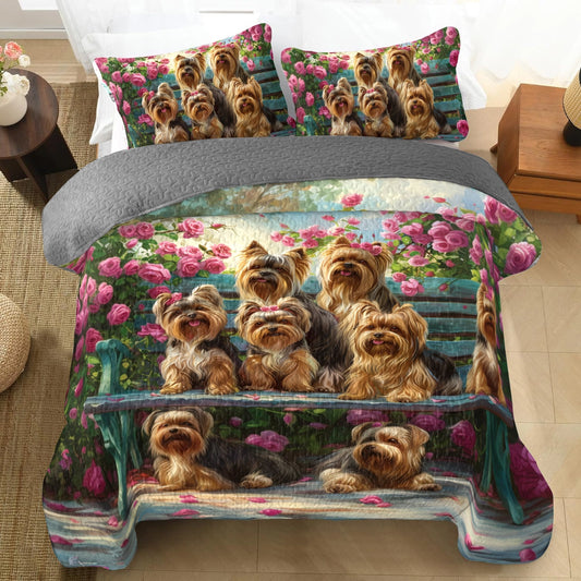 Shineful All Season Quilt 3-Piece Set Adorable Rose Yorkie