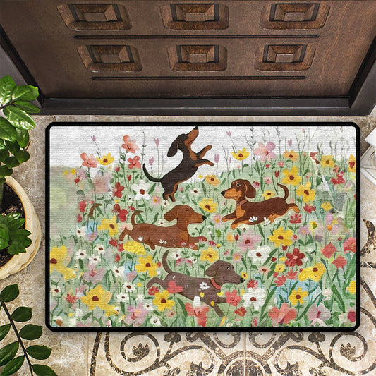 Ultra-Thin Non Skid Floor Mat, Kitchen Rugs Dachshund in Flower Garden