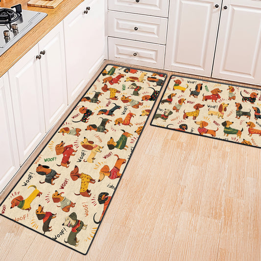 Shineful Ultra-Thin Non Skid Floor Mat, Kitchen Rugs Wagging Woof - Dachshund Delight