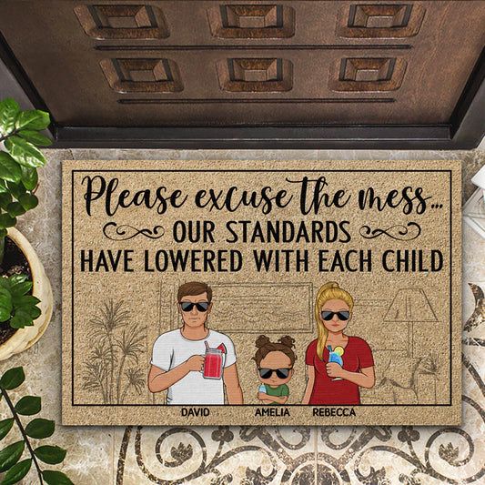 Shineful Doormat Please Excuse The Mess Our Standards Have Lowered With Each Child Couple Husband Wife Family Personalized Door Mat
