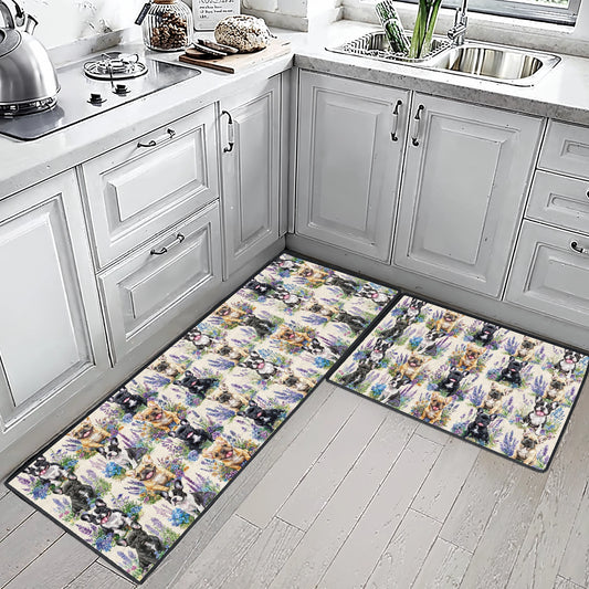 Shineful Ultra-Thin Non Skid Floor Mat, Kitchen Rugs Frenchie Flower Friends