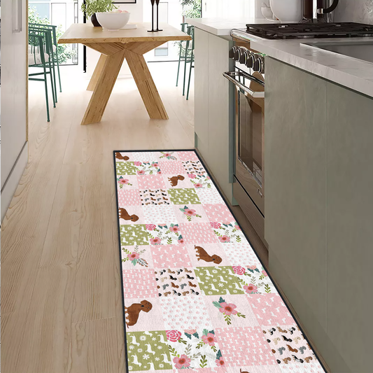 Shineful Ultra-Thin Non Skid Floor Mat, Kitchen Rugs Floral Dachshunds