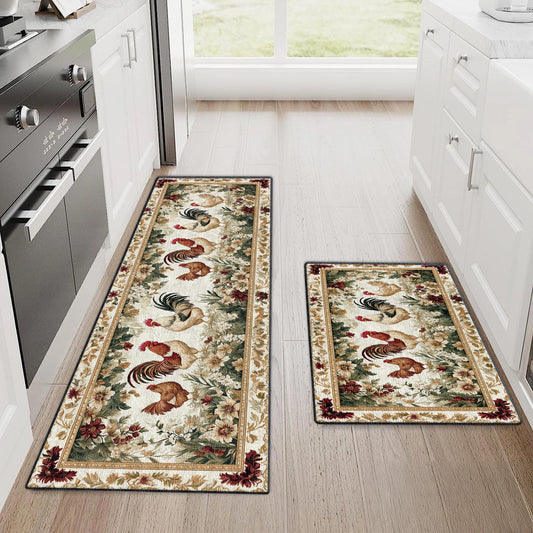 Shineful Ultra-Thin Non Skid Floor Mat, Kitchen Rugs Roosters Vintage Garden