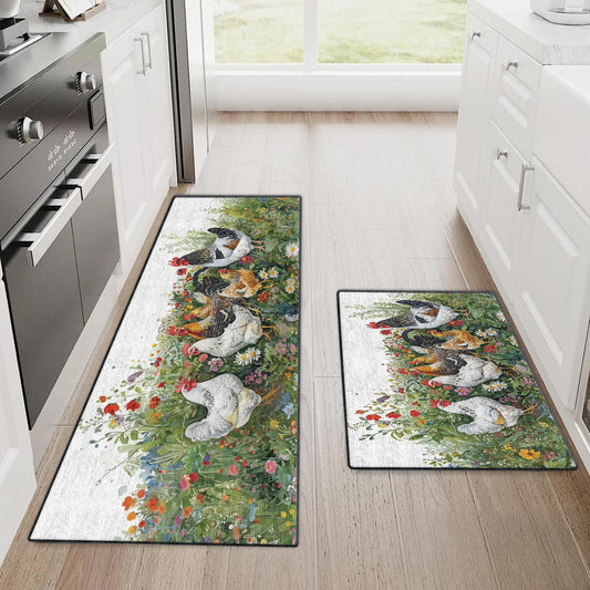 Shineful Ultra-Thin Non Skid Floor Mat, Kitchen Rugs Elegant Chicken