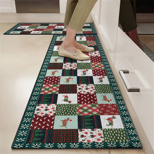 Shineful Ultra-Thin Non Skid Floor Mat, Kitchen Rugs Christmas Dachshund