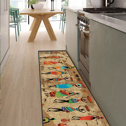 Shineful Ultra-Thin Non Skid Floor Mat, Kitchen Rugs African Rhythm
